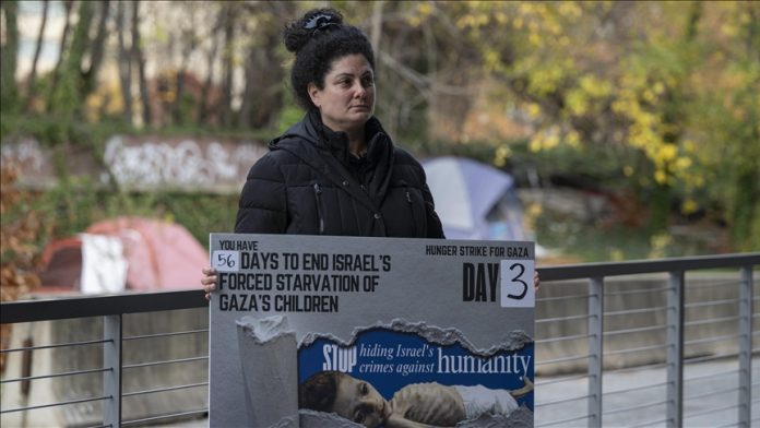 Aktivis Amerika Hazami Barmada memasuki hari ketiga aksi mogok makan dekat Departemen Luar Negeri dan Gedung Putih pada Rabu, menyerukan penghentian segera blokade pangan oleh Israel terhadap Palestina di Gaza.