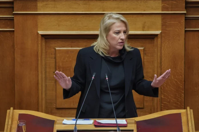 Rena Dourou, kepala urusan luar negeri SYRIZA, menekankan pentingnya penyelesaian yang adil untuk masalah Palestina.
