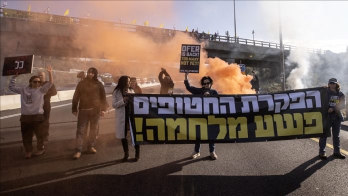 Pada hari Selasa, keluarga tahanan Israel yang ada di Gaza menutup jalan utama di Kota Yerusalem untuk menuntut agar kesepakatan gencatan senjata dan pertukaran tahanan dengan Hamas dilanjutkan.