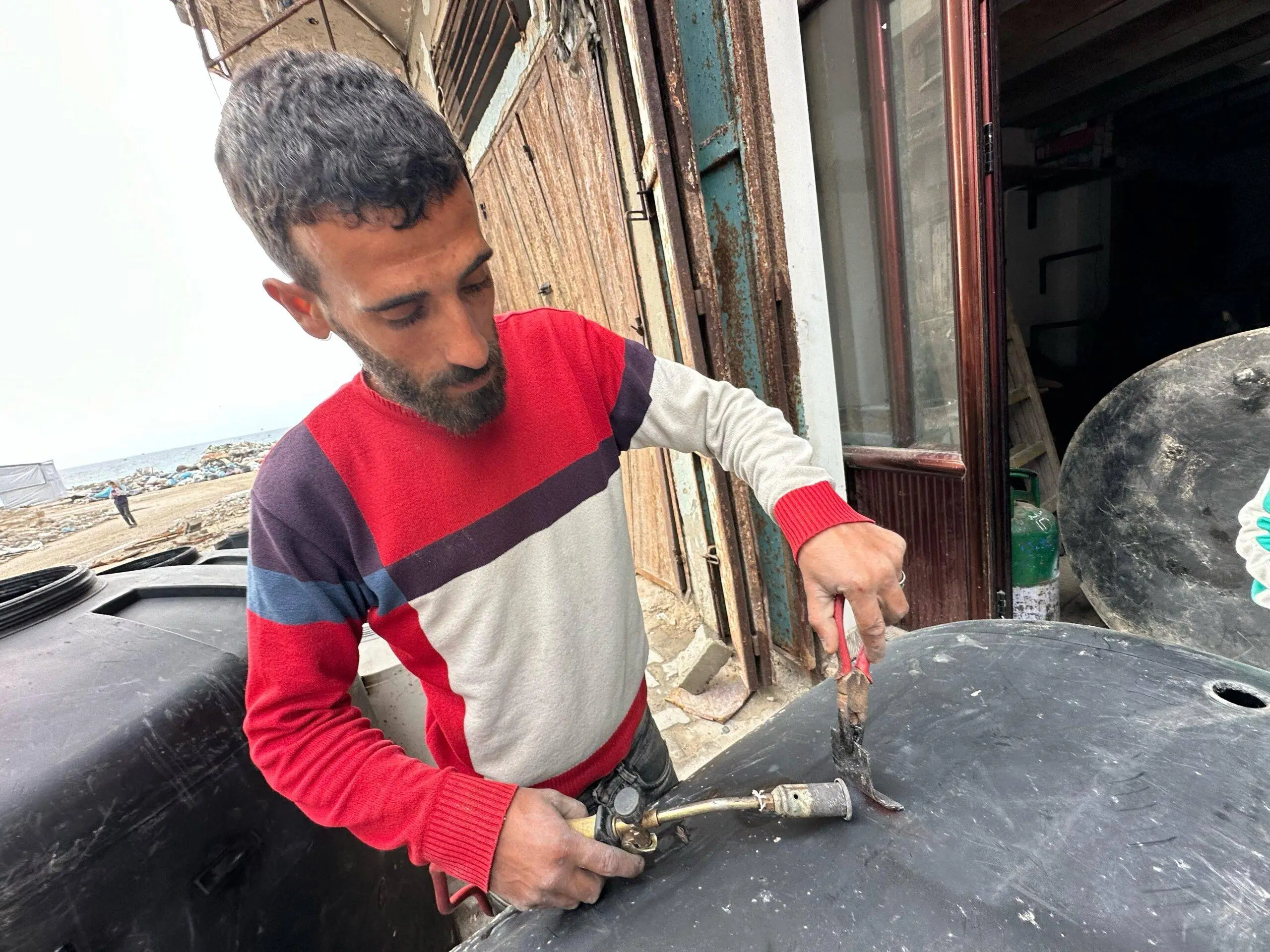 Di tengah blokade yang masih berlangsung, warga Gaza kini berjibaku memperbaiki tangki-tangki air yang rusak akibat tembakan dan bom dari militer Israel.